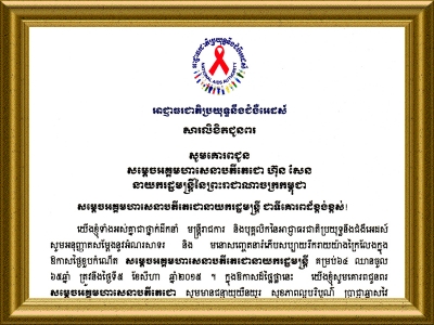 ខាងក្រោមនេះគឺជា ព្រះរាជសាររបស់ សម្តេចព្រះមហាក្សត្រី ព្រះវររាជមាតា នរោត្តម មុនិនាថ សីហនុ ជូនចំពោះ ឯកឧត្តមទេសរដ្ឋមន្ត្រី អៀង មូលី ប្រធានអាជ្ញាធរជាតិប្រយុទ្ធនឹងជំងឺអេដស៍៖