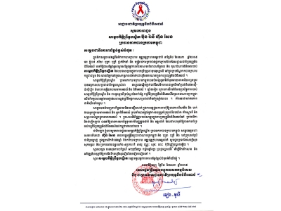 ខាងក្រោមនេះគឺជា ប័ណ្ណថ្លែងអំណរគុណរបស់កាកបាទក្រហមកម្ពុជា ជូនចំពោះឯកឧត្តមទេសរដ្ឋមន្ត្រី អៀង មូលី ប្រធានអាជ្ញាធរជាតិប្រយុទ្ធនឹងជំងឺអេដស៍៖