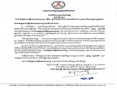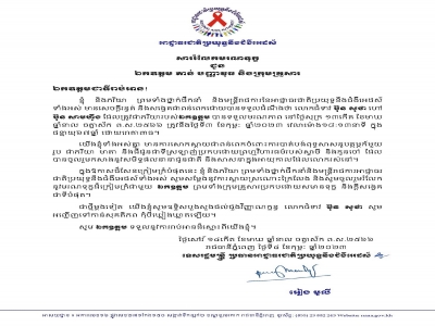 នៅរសៀលថ្ងៃពុធ ១០កើត ខែផល្គុន ឆ្នាំខាល ចត្វាស័ក ព.ស.២៥៦៦ ត្រូវនឹង ថ្ងៃទី១ ខែមីនា ឆ្នាំ២០២៣ ចាប់ពីម៉ោង៣ អាជ្ញាធរជាតិប្រយុទ្ធនឹងជំងឺអេដស៍ រៀបចំកិច្ចប្រជុំថ្នាក់ដឹកនាំប្រចាំខែកុម្ភៈ ឆ្នាំ២០២៣ ក្រោមអធិបតីភាពដ៏ខ្ពង់ខ្ពស់ ឯកឧត្តមទេសរដ្ឋមន្ត្រី អៀង មូលី ប្រធានអាជ្ញាធរ។ កិច្