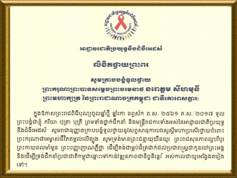 លិខិតថ្វាយព្រះពរ ព្រះករុណាព្រះបាទសម្តេចព្រះបរមនាថ នរោត្តម សហីមុនី ព្រះមហាក្សត្រនៃព្រះរាជាណាចក្រកម្ពុជា ទីជាគោរពសក្កាៈ ក្នុងឳកាសចូលឆ្នាំថ្មី ឆ្នាំរកា នព្វស័ក ព.ស. ២៥៦១ គ ស ២០១៧