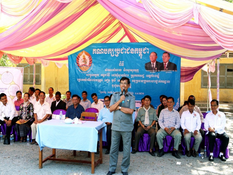 បន្ទាប់ពីមតិស្វាគមន៍របស់លោកអភិបាលរងស្រុកបរសេដ្ឋ និងការជម្រាបជូនអំពីគោលនយោបាយរាជរដ្ឋាភិបាលដែលកំពុងផ្តល់របបសន្តិសុខសង្គម និងអត្ថប្រយោជន៍ជាច្រើនដល់កម្មករ និងដាក់សំណួរឱ្យកម្មករកម្មការិនីឆ្លើយដើម្បីយក រង្វាន់ពីលោកអនុប្រធានមន្ទីរការងារ និងបណ្តុះបណ្តាលវិជ្ជាជីវៈខេត្តកំពង់ស្ពឺរួចមក ឯកឧត្តម យឹម សុខុម បានមានប្រសាសន៍អំពាវនាវឱ្យកម្មករកម្មករិនីទាំងអស់ទៅបោះឆ្នោតកុំខាននៅថ្ងៃទី២៩ ខែកក្កដា ដើម្បីអនុវត្តសិទ្ធិជាពលរដ្ឋ ហើយកុំជឿតាមការឃោសនារបស់ទណ្ឌិត សម រង្ស៊ី។ យើងបោះឆ្នោតជូនគណបក្សប្រជាជនកម្ពុជា ដើម្បីសម្តេចតេជោបន្តដឹកនាំ និងបន្ត ផ្តល់អត្ថប្រយោជន៍ ហើយយើងមានការងារធ្វើ ព្រមទាំងមានប្រាក់ចំណូលផងដែរ។