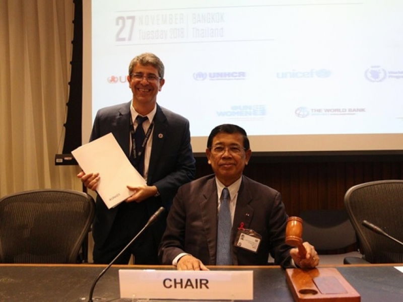 នៅព្រឹកថ្ងៃអង្គារ ៥រោច ខែកត្តិក ឆ្នាំច សំរឹទ្ធិស័ក ព.ស.២៥៦២ ត្រូវនឹងថ្ងៃទី២៧ ខែវិច្ឆិកា ឆ្នាំ២០១៨ នៅទីស្នាក់ការកណ្តាលគណៈកម្មាធិការសេដ្ឋកិច្ច និងសង្គម អង្គការសហប្រជាជាតិប្រចាំតំបន់អាស៊ីប៉ាស៊ីហ្វិក (UNESCAP: United Nations Economic and Social Commission for Asia and the Pacific) ឯកឧត្តម អៀង មូលី ទេសរដ្ឋមន្ត្រី ប្រធានអាជ្ញាធរជាតិប្រយុទ្ធនឹងជំងឺអេដស៍ ត្រូវបានជ្រើសតាំងជាប្រធានកិច្ចប្រជុំស្តីពីការពិនិត្យឡើងវិញការអនុវត្តការប្តេជ្ញាចិត្ត របស់អន្តររដ្ឋាភិបាលអាស៊ីប៉ាស៊ីហ្វិកលើបញ្ហាមេរោគអេដស៍ជំងឺអេដស៍សម្រាប់រយៈពេល២ឆ្នាំ គឺពីឆ្នាំ២០១៨ដល់ ឆ្នាំ២០២០។