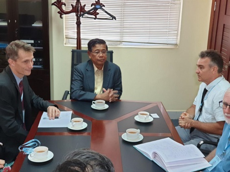 នាព្រឹកថ្ងៃទី ២២ ខែកុម្ភះ ឆ្នាំ២០១៩ នៅអាជ្ញាធរជាតិប្រយុទ្ធនឹងជំងឺអេដស៍ ឯកឧត្តម ទេសរដ្ឋមន្រ្តី អៀង មូលី ប្រធានអាជ្ញាធរជាតិប្រយុទ្ធនឹងជំងឺអេដស៍ បានជួបពិភាក្សាការងារ ជាមួយ លោកបណ្ឌិត Amaury Peeters ប្រធានប្រចាំកម្ពុជានៃ អង្គការ LAUVAIN Cooperation លោកបណ្ឌិត Bart Jacobs និងកញ្ញា Charllotte Aberdein មន្រ្តី នៃអង្គការ GIZ ប្រទេសអាឡឺម៉ង់។