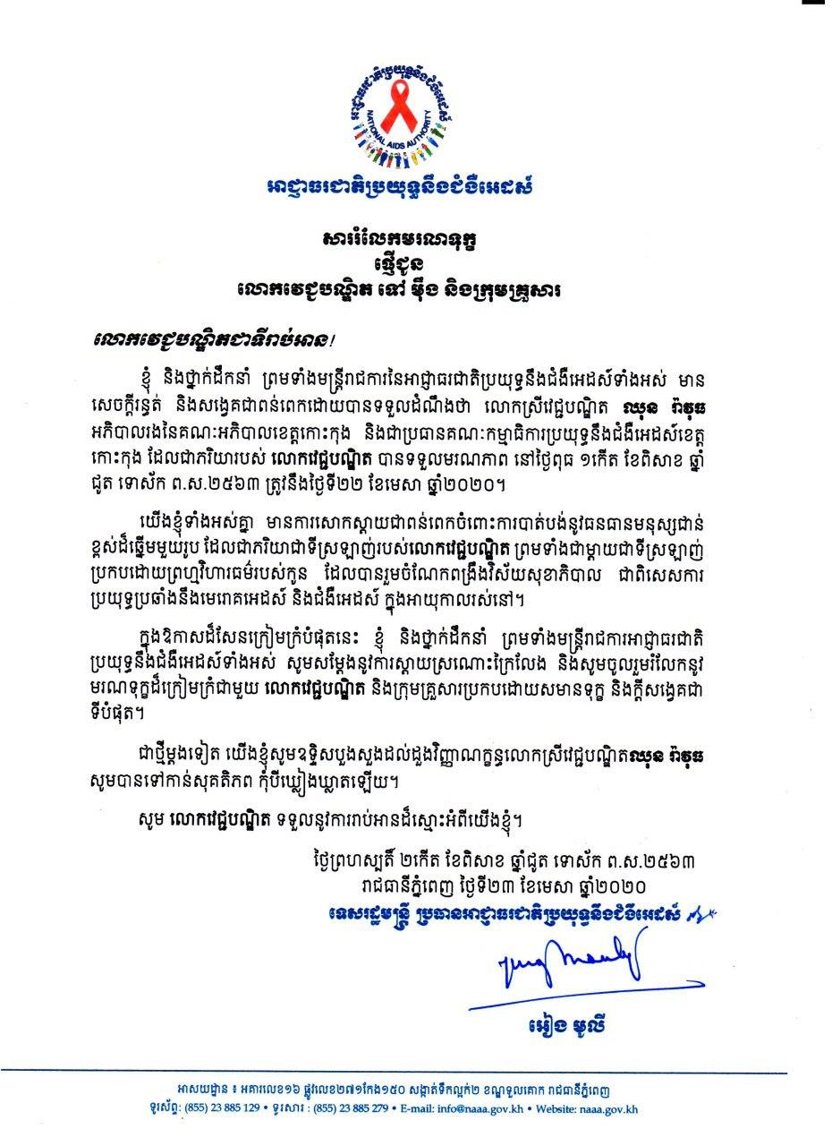 សាររំលែកមរណទុក្ខ ផ្ញើជូនលោកវេជ្ជបណ្ឌិត ទៅ ម៉ឹង និងក្រុមគ្រួសារ
