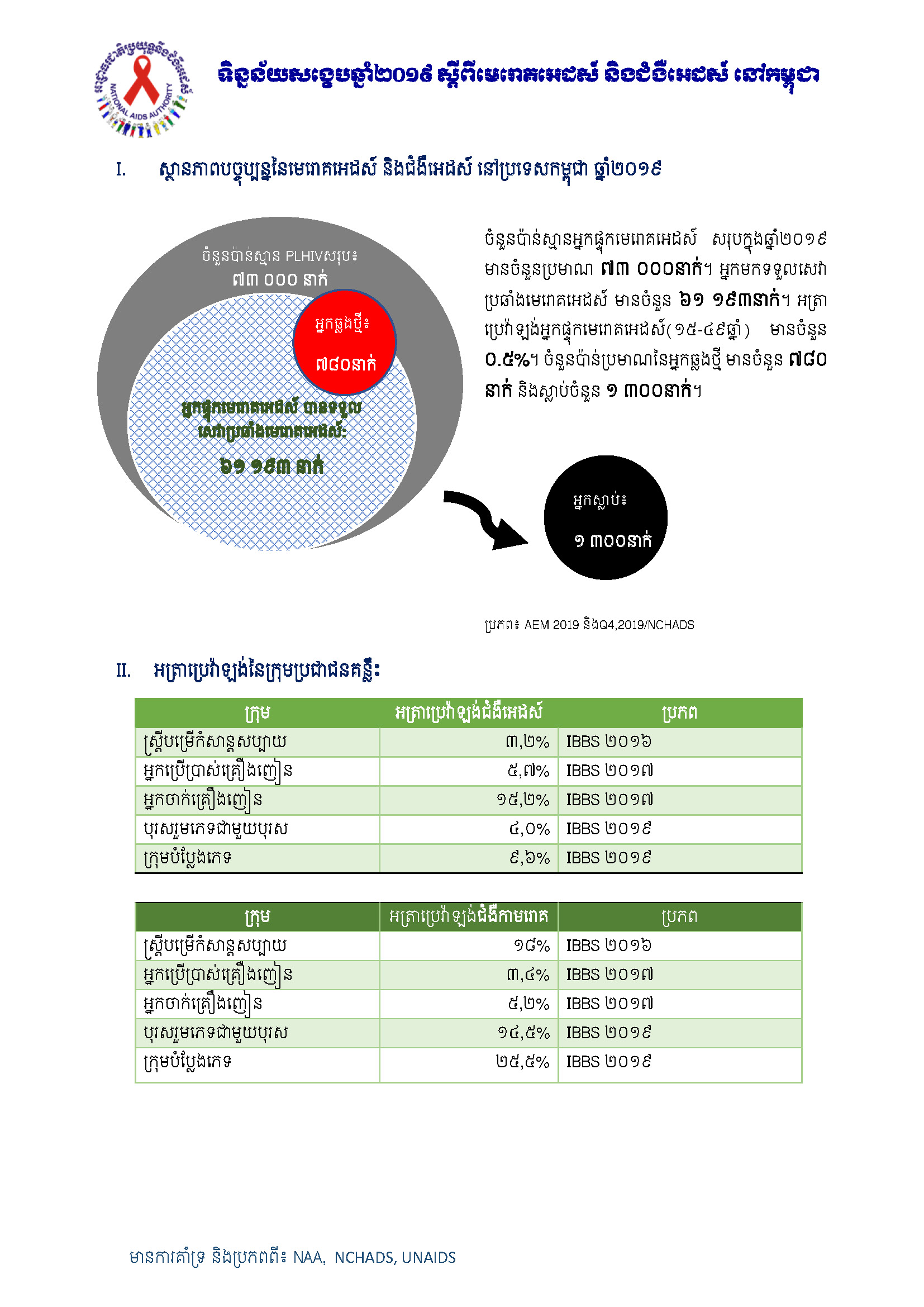 ទិន្នន័យសង្ខេបឆ្នាំ២០១៩ ស្តីពីមេរោគអេដស៍ និងជំងឺអេដស៍ នៅកម្ពុជា