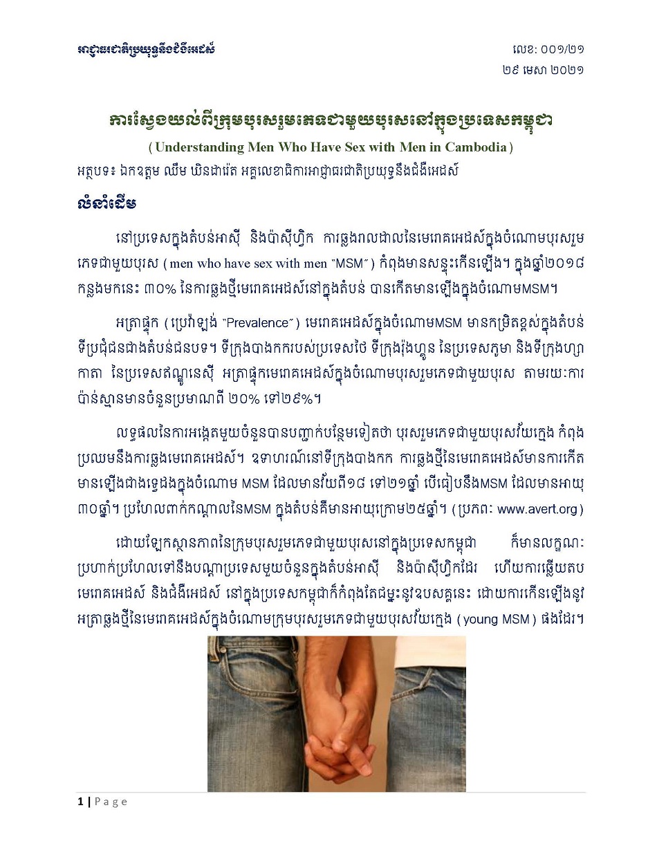 ការស្វែងយល់ពីក្រុមបុរសរួមភេទជាមួយបុរសនៅក្នុងប្រទេសកម្ពុជា