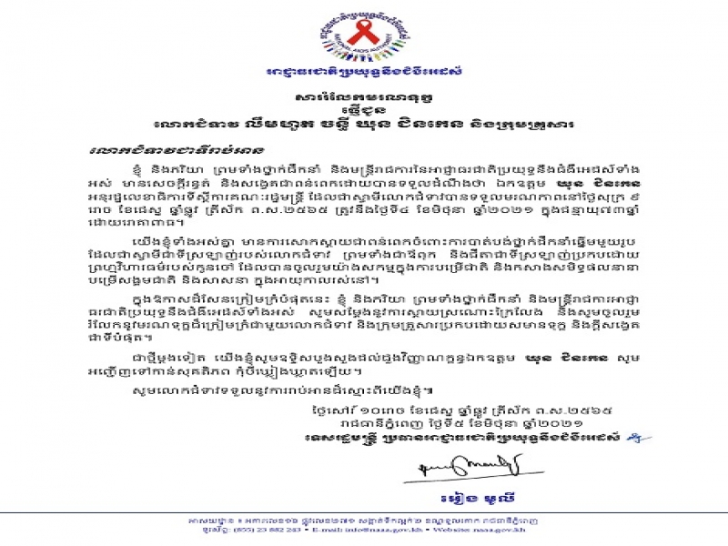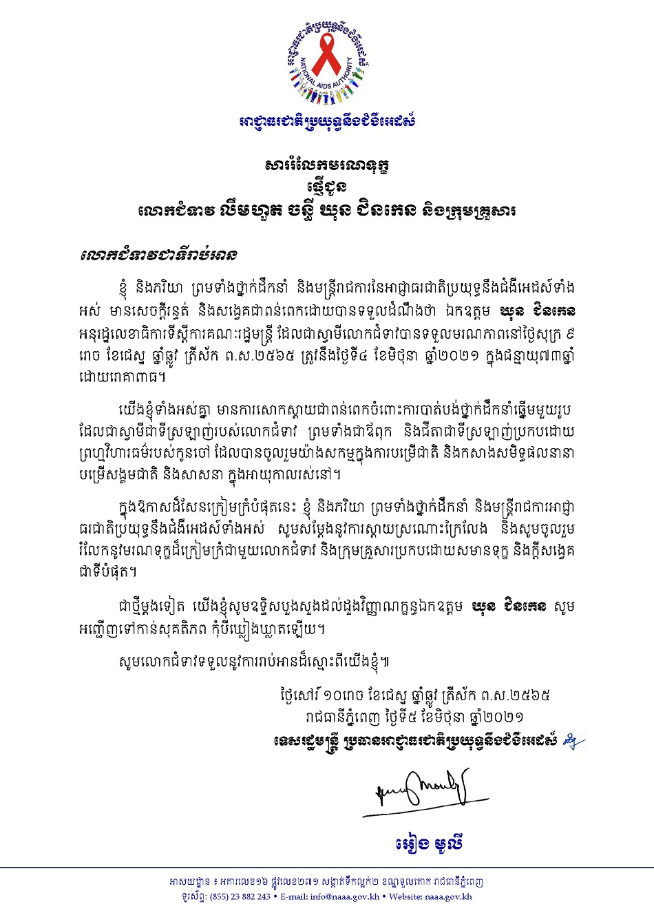 សាររំលែកមរណទុក្ខផ្ញើជូនលោកជំទាវ លឹមហួត ចន្ធី ឃុន ជិនកេន និងក្រុមគ្រួសារ