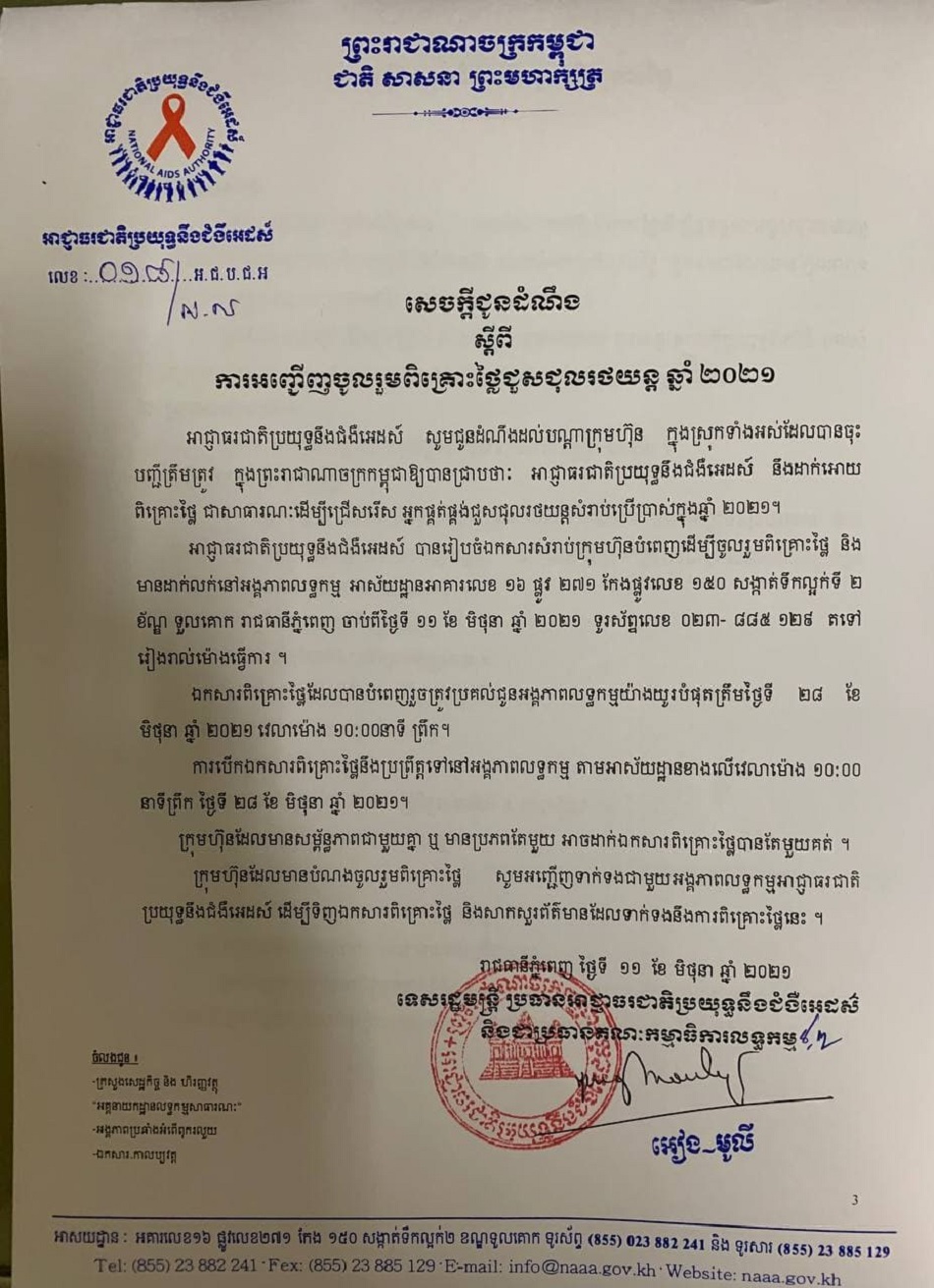 ឯកសារសន្និបាតអាជ្ញាធរជាតិប្រយុទ្ធនឹងជំងឺអេដស៍