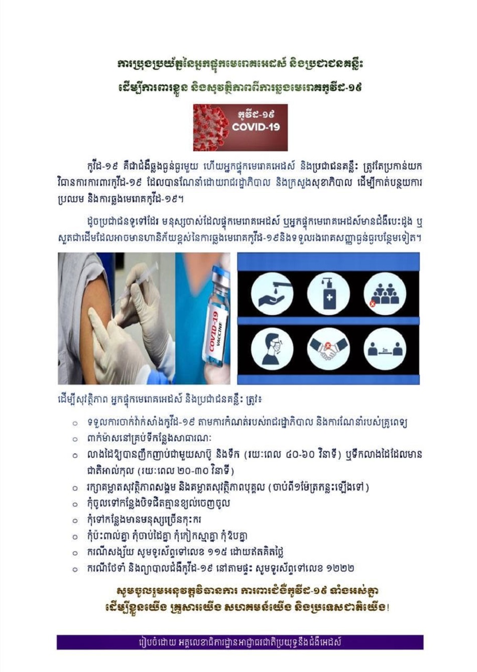 ការប្រុងប្រយ័ត្ននៃអ្នកផ្ទុកមេរោគអេដស៍ និងប្រជាជនគន្លឹះដើម្បីការពារខ្លួន និងសុវត្ថិភាពពីការឆ្លងមេរោគកូវីដ-១៩