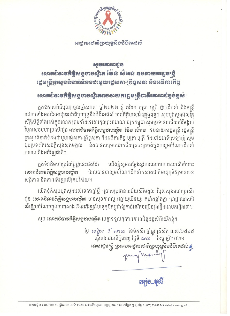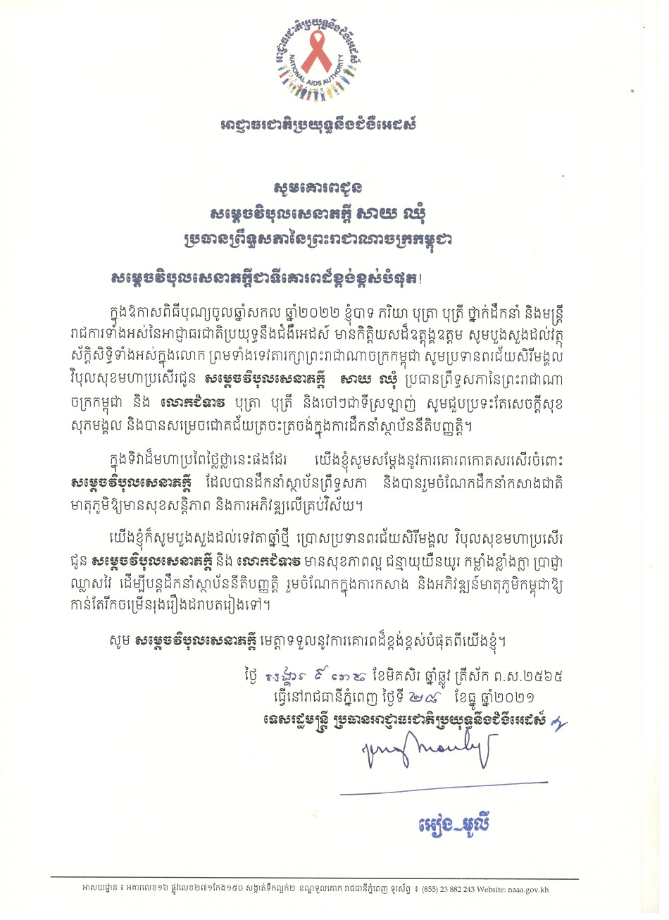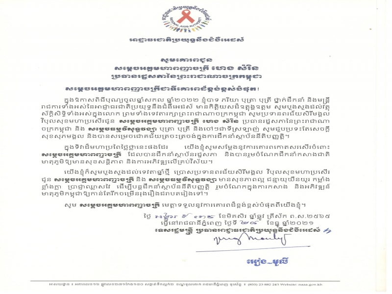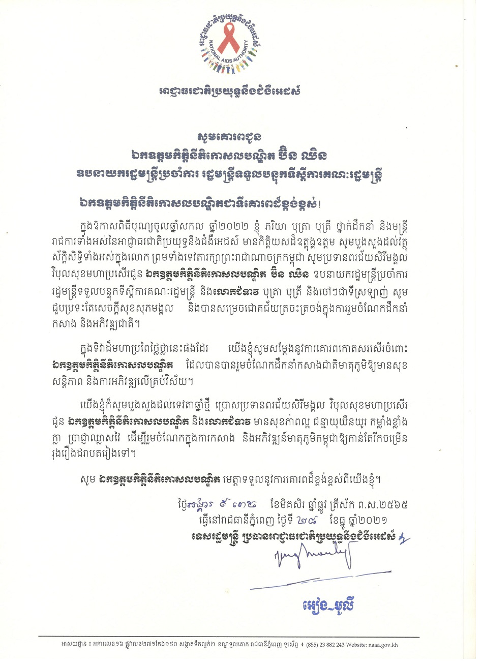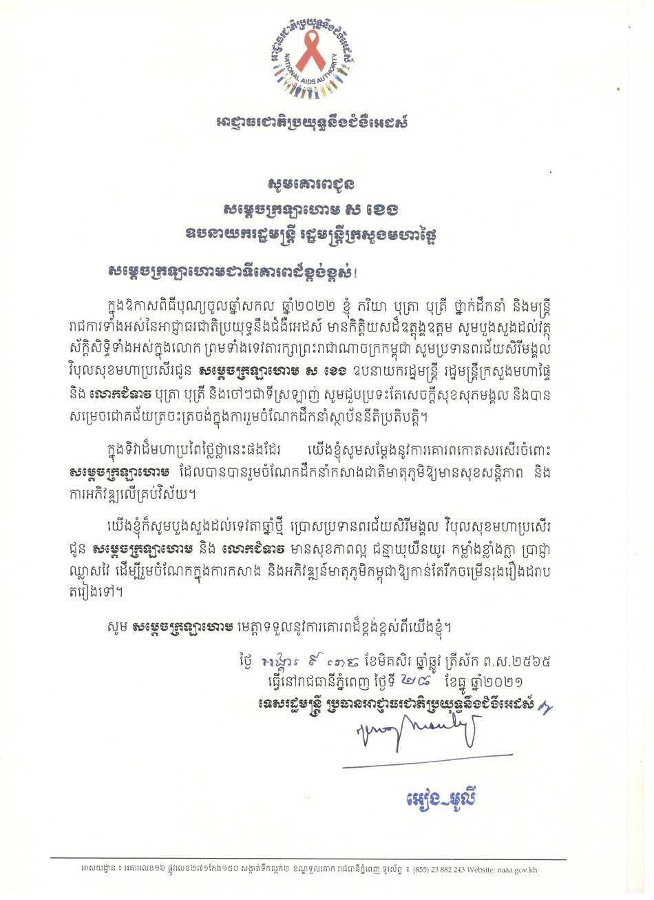 លិខិតគោរពជូនពរ ថ្នាក់ដឹកនាំកំពូល នៃព្រះរាជាណាចក្រកម្ពុជា ក្នុងឱកាសពិធីបុណ្យចូលឆ្នាំសកល ២០២១
