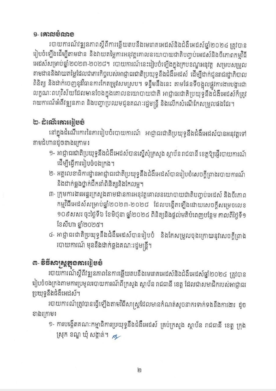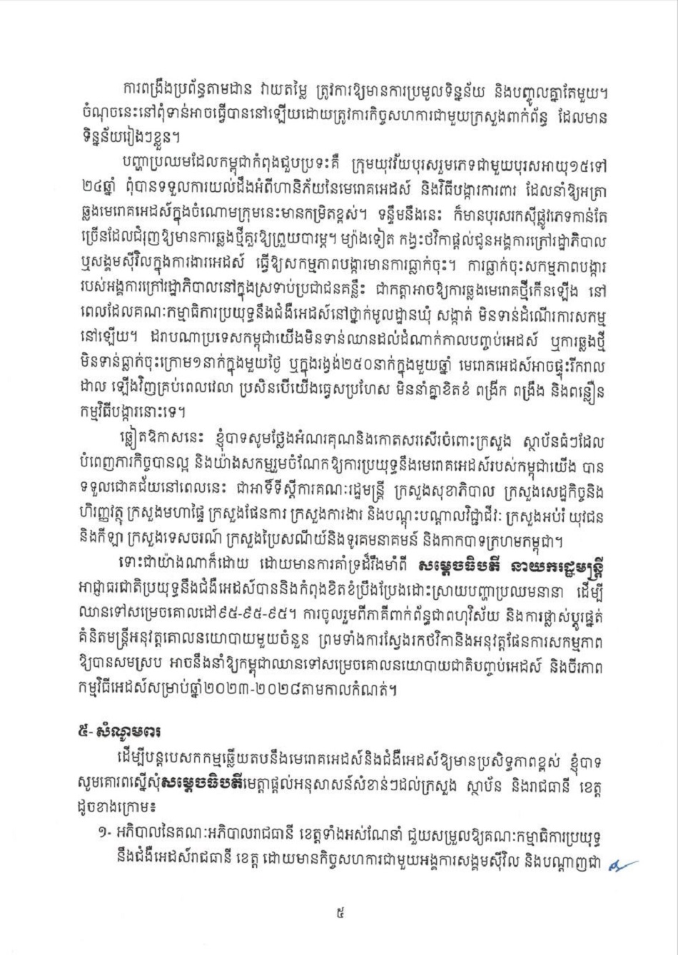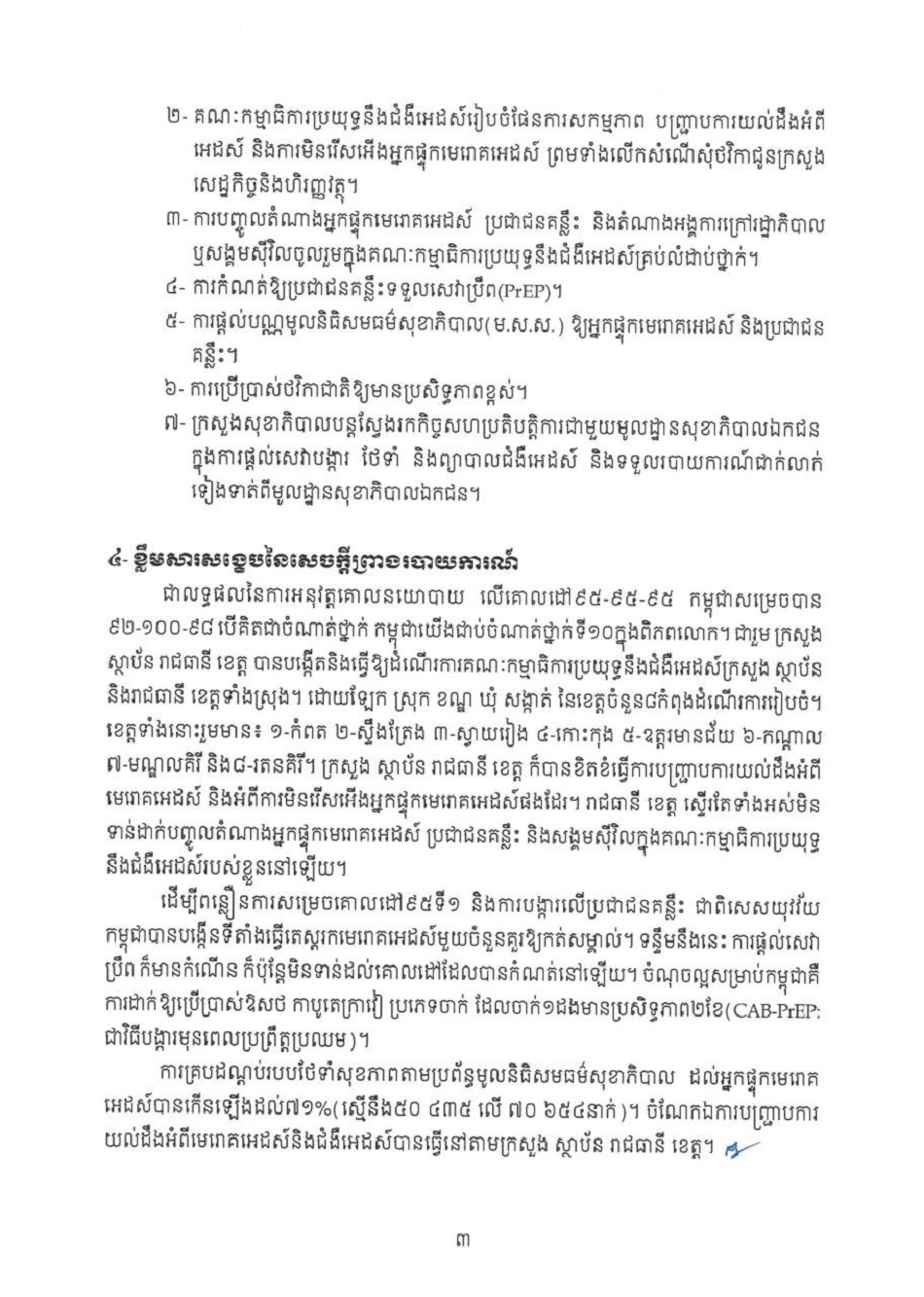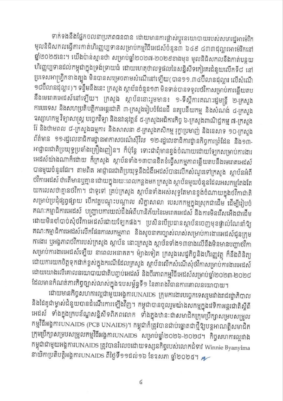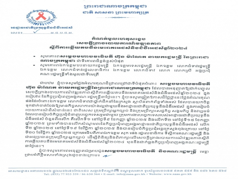 កំណត់មូលហេតុសង្ខេប សេចក្តីព្រាងរបាយការណ៍វឌ្ឍនភាព ស្តីពីការឆ្លើយតបនឹងមេរោគអេដស៍និងជំងឺអេដស៍ឆ្នាំ២០២៤