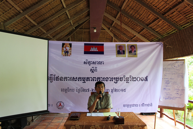 នាថ្ងៃទី ២៧-២៨ ខែ មីនា ឆ្នាំ ២០១៥ នៅទីក្រុងកែប ឯកឧត្តម អៀង មូលី ទេសរដ្ឋមន្រ្តីទទួលបន្ទុកបេសកកម្មពិសេសនិងជាប្រធានអាជ្ញាធរជាតិប្រយុទ្ធនឹងជំងឺអេដស៍អញ្ជើញជាអធិបតីក្នុងសិក្ខាសាលាធ្វើផែនការសកម្មភាពការងារប្រចាំឆ្នាំ ២០១៥ របស់អាជ្ញាធរជាតិប្រយុទ្ធនឹងជំងឺអេដស៍។