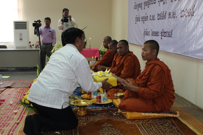 កាលពីរសៀលថ្ងៃទី១០មេសា ឆ្នាំ២០១៥ ឯកឧត្តម ទេសរដ្ឋមន្រ្តី អៀង មូលី ប្រធានអាជ្ញាធរ ជាតិប្រយុទ្ធនឹងជំងឺអេដស៍និងលោកជំទាវ ឯកឧត្តម លោកជំទាវ អនុប្រធាន ទីប្រឹក្សា ដែលជាថ្នាក់ដឹកនាំ និងមន្រ្តីរាជការទាំងអស់ បាននិមន្តព្រះសង្ឃដើម្បីសូត្រមន្តបួងសួងសុំសេចក្តីសុខគ្រប់ប្រការក្នុងឱកាសបុណ្យចូលឆ្នាំថ្មី ឆ្នាំមមែសប្តស័ក ព.ស២៥៥៩ព្រះនាម រាក្យសាទេវី ដែលនឹងចូលមកដល់តាម ទំនៀមទំលាប់ប្រពៃណីជាតិ ។ ជារៀងរាល់ឆ្នាំអាជ្ញាធរជាតិតែងតែរៀបចំពិធីសូត្រមន្តចំរើនព្រះបរិត្តនិង ប្រគេនទ័យទានដល់ព្រះសង្ឃទៅតាមគន្លងប្រពៃណីព្រះពុទ្ធសាសនានិងទំនៀមទម្លាប់ខ្មែរពីបុរាណនៅ មុនពេលពិធីបុណ្យចូលឆ្នាំមកដល់ ដើម្បីឧទ្ទិសមគ្គផលកុសលផលបុណ្យជូនដល់ព្រះវិញ្ញាណក្ខន្ធអតីត ព្រះមហាក្សត្យ ព្រះមហាកត្រយានី បុព្វការីជនមានមាតាបិតាជីដូនជីតានិងញាតិការទាំង៧សន្តានព្រមទាំងវីរៈយុទ្ធជនយុទ្ធនារីអ្នកស្នេហាជាតិទាំងអស់ និងបងប្អូនជនដែលបានធ្វើមរណកាលទៅកាន់ លោកខាងមុខក្នុងបុព្វហេតុជាតិទឹកដីដោយសាររបបប្រល័យពូជសាសន៍ ប៉ុល ពត និង បងប្អូនជនរង គ្រោះដែលបានស្លាប់ដោយសារជំងឺអេដស៍សូមឲ្យទទួលបាននូវសុខគតិភពកុំបីឃ្លៀងឃ្លាតឡើយ។