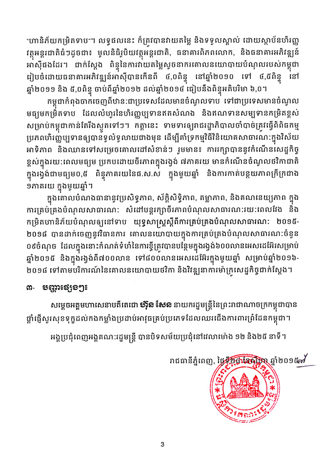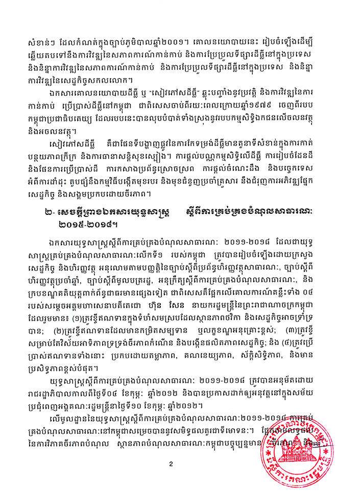 ២. សេចក្តីព្រាង ឯកសារយុទ្ធសាស្រ្ត ស្តីពីការគ្រប់គ្រងបំណុលសាធារណៈ ២០១៥-២០១៨។