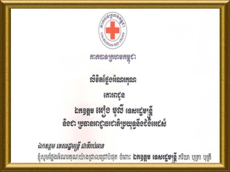 លិខិតថ្លែងអំណរគុណ សម្តេចកិត្តិព្រឹទ្ធបណ្ឌិត ប៊ុនរ៉ានី ហ៊ុនសែន ជូន ឯកឧត្តមទេសរដ្ឋមន្រ្តី អៀង មូលី