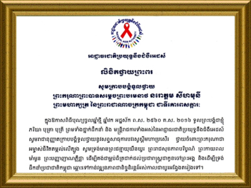 លិខិតថ្វាយព្រះពរ ព្រះករុណាព្រះបាទសមេ្តចព្រះបរមនាថ នរោត្តម សីហមុនី ព្រះមហាក្សត្រ នៃព្រះរាជាណាចក្រកម្ពុជា ក្នុងឪកាសពិធីបុណ្យចូលឆ្នាំថ្មី