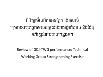 ...read more »Review of GDJ-TWG performance: Technical Working Group Strengthening Exercise The below is the slide presentation title "Review of GDJ-TWG performance: Technical Working Group Strengthening Exercise"
